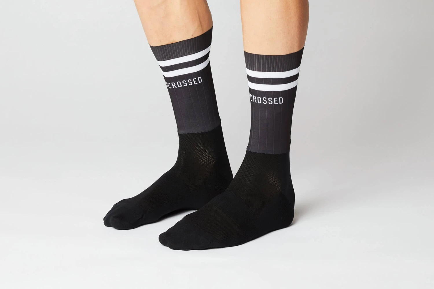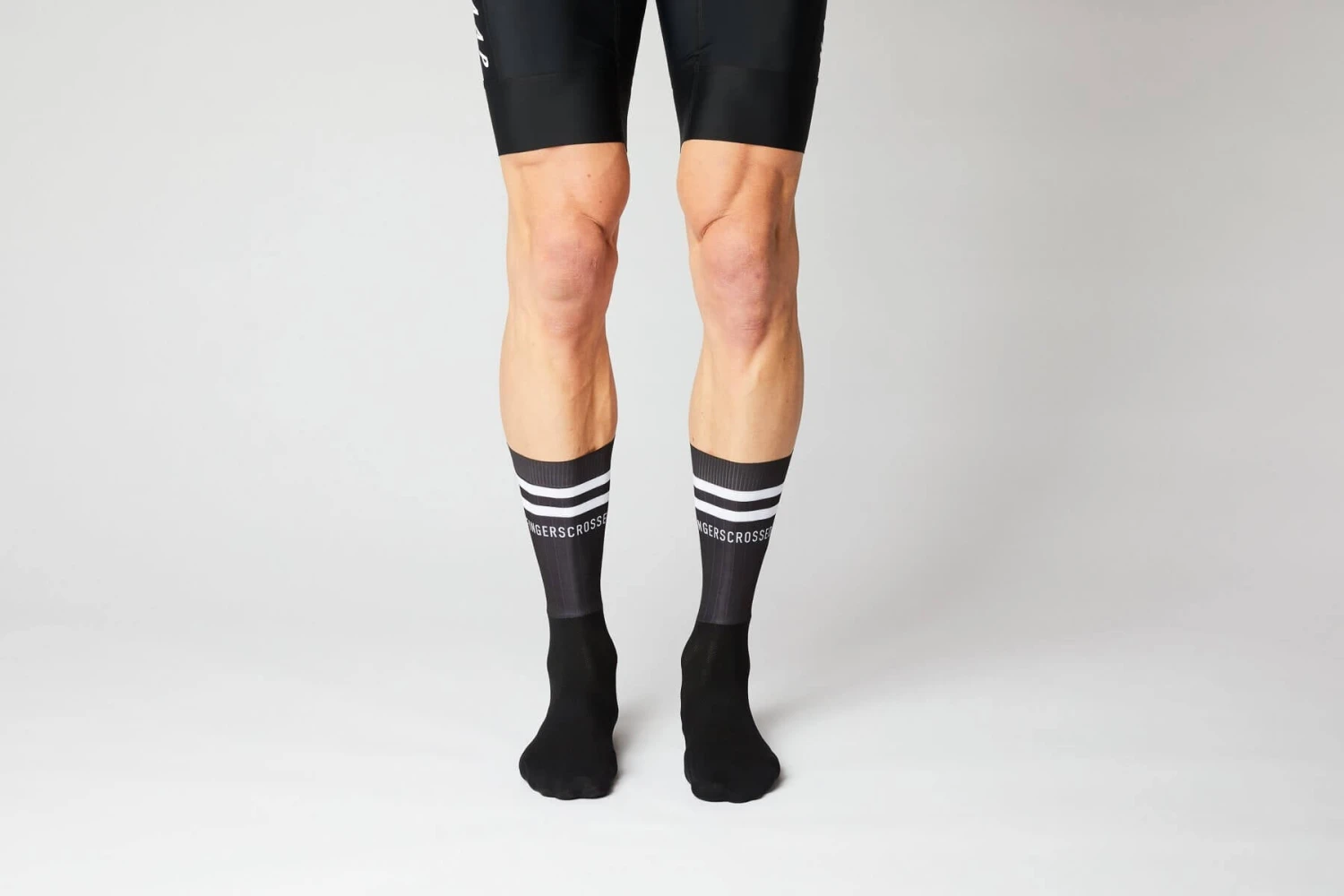 FINGERSCROSSEDÂ AEROÂ is a sock made from a combination of nylon & spandex. The structure of the upper part of the sock ensures maximum aerodynamics. The seamless toe and the elastic fit contribute to a high wearing comfort. Non-slip silicone fabric on cuff. Compression band for more stability at the instep.